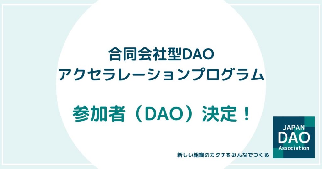合同会社型DAOアクセラレーションプログラム 参加者(DAO)決定!